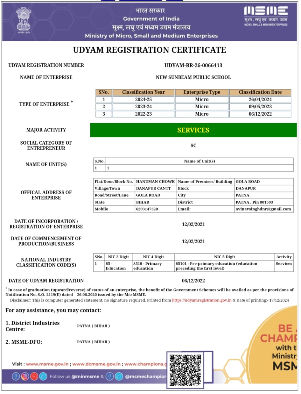 newsunbeamschooldnr@gmail.com,Mobile no : 7463802480